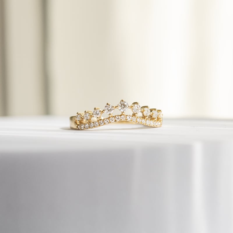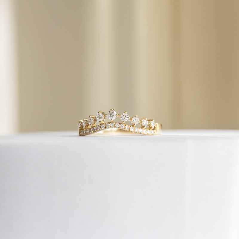 • zwei Reihen von Diamanten bilden hier den Effekt des trendy Layerings von Ringen