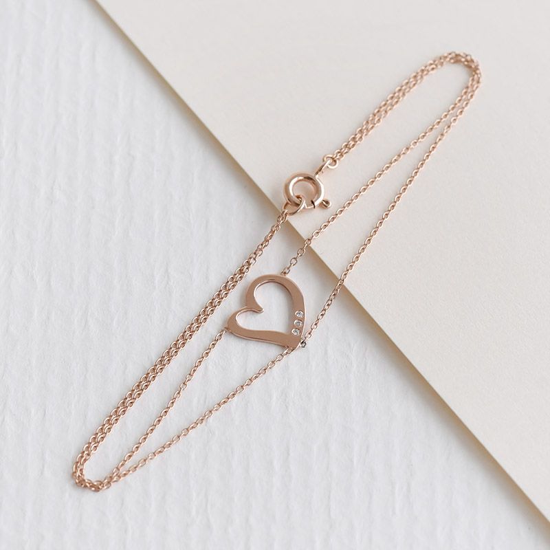 • originelles doppeltes Armband mit einem Herzen mit drei Diamanten als Anhänger