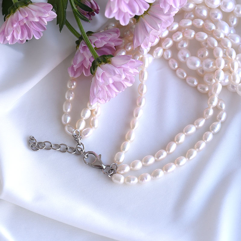 • silberne Kette mit weißen Süßwasserperlen