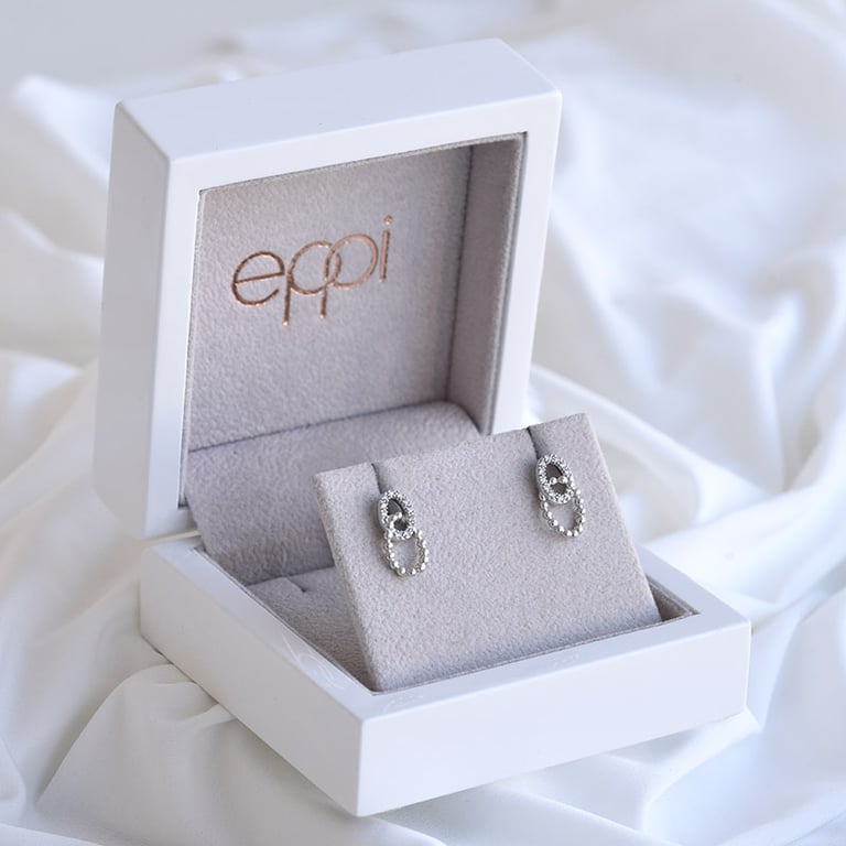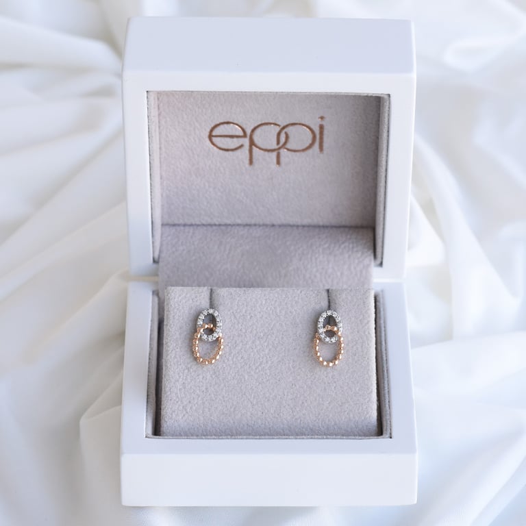 • Diamantohrringe in Form von zwei verbundenen Ringen
