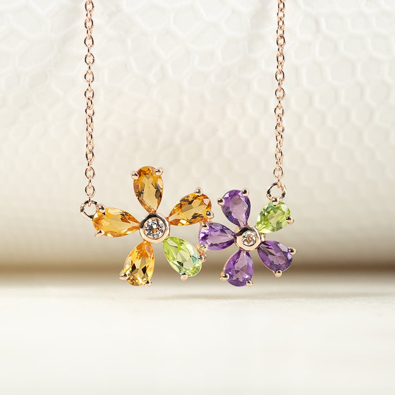• schillernde Blütenpracht auf einer 750er Roségold-Kette