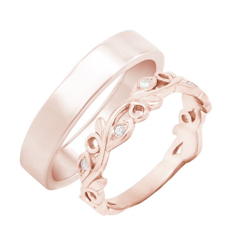 Eheringe aus Eternity-Ring mit Lab Grown Diamanten und einem flachen Ring Seir