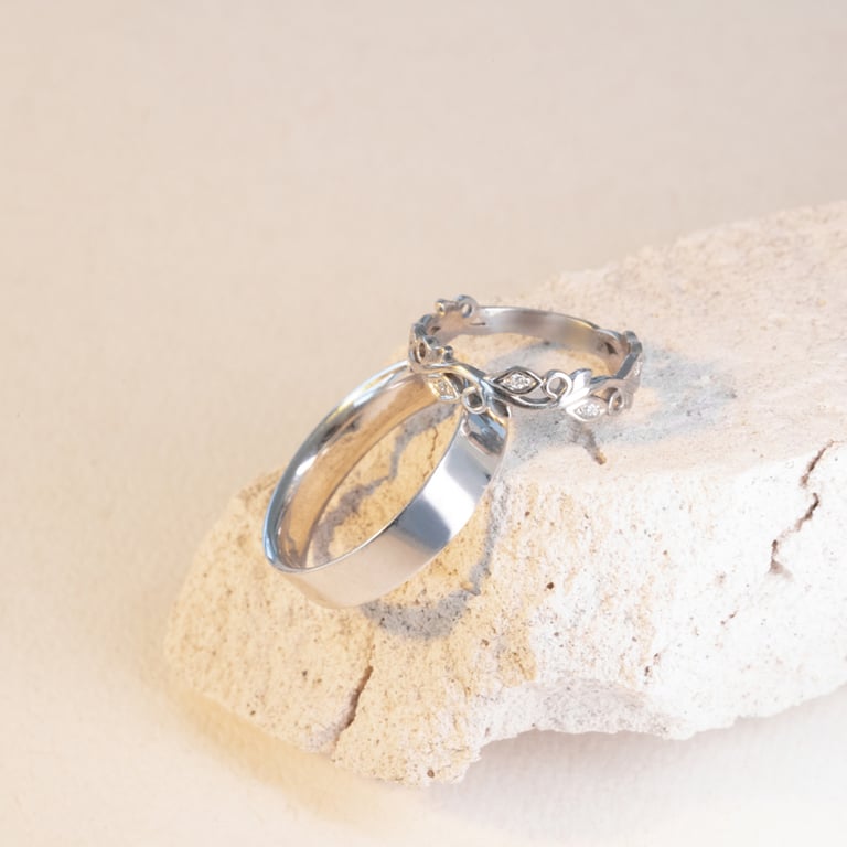 • luxuriöse Eheringe für das Brautpaar aus edlem recyceltem Gold