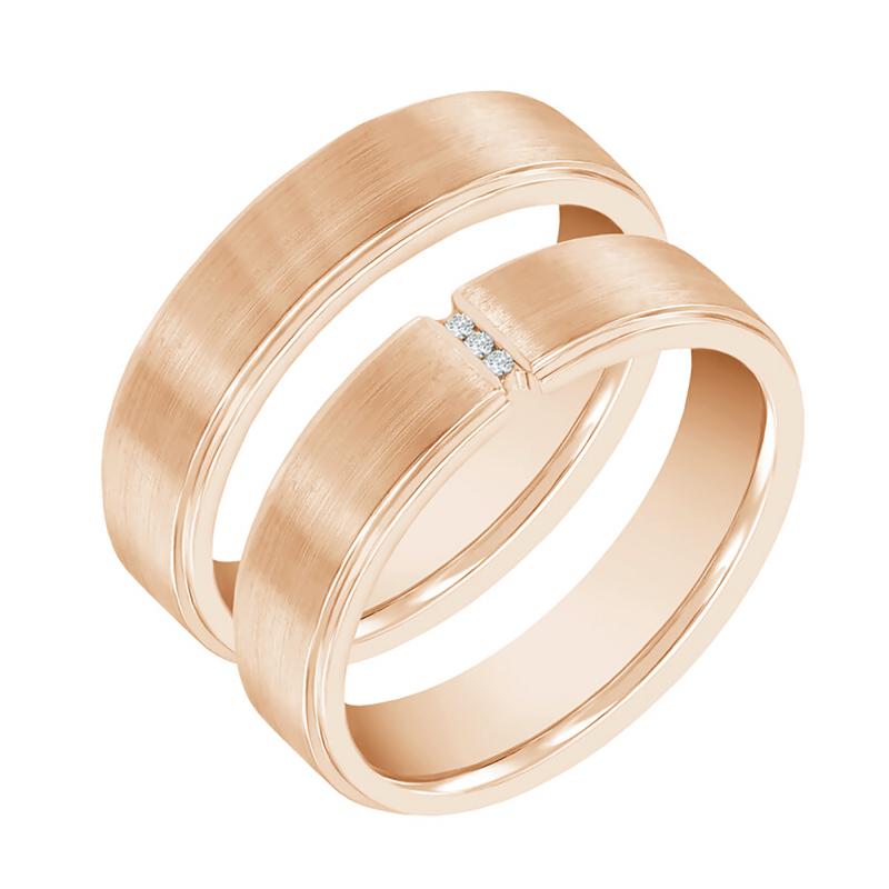 • die Damenvariante hat zusätzliche drei Diamanten, die wie in einer Spannfassung eingearbeitet sind