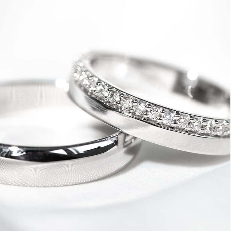 • ein Paar Ringe aus recyceltem Gold, um Ihre Liebe zueinander auf elegante Weise zu besiegeln