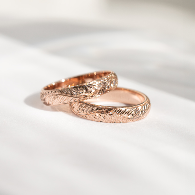 Eheringe aus Gold mit Zweig-Gravur Matu