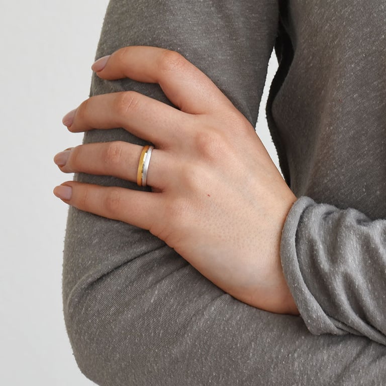 • die Ringe können in der Kombination von beliebigen zwei Farben bestellt werden. Ihre gewünschte Kombination geben Sie beim dritten Schritt de Bestellung ein