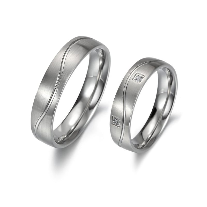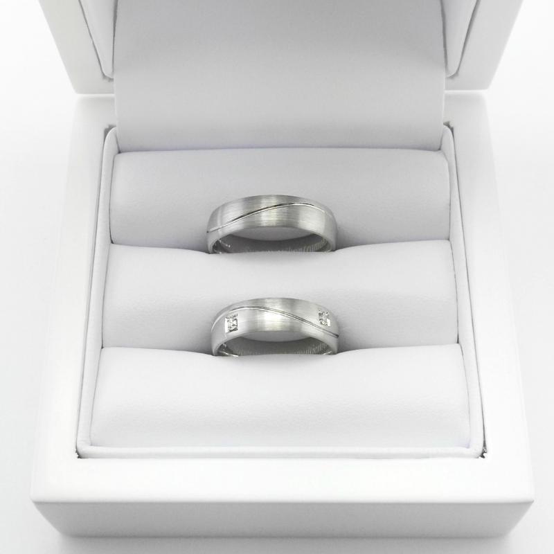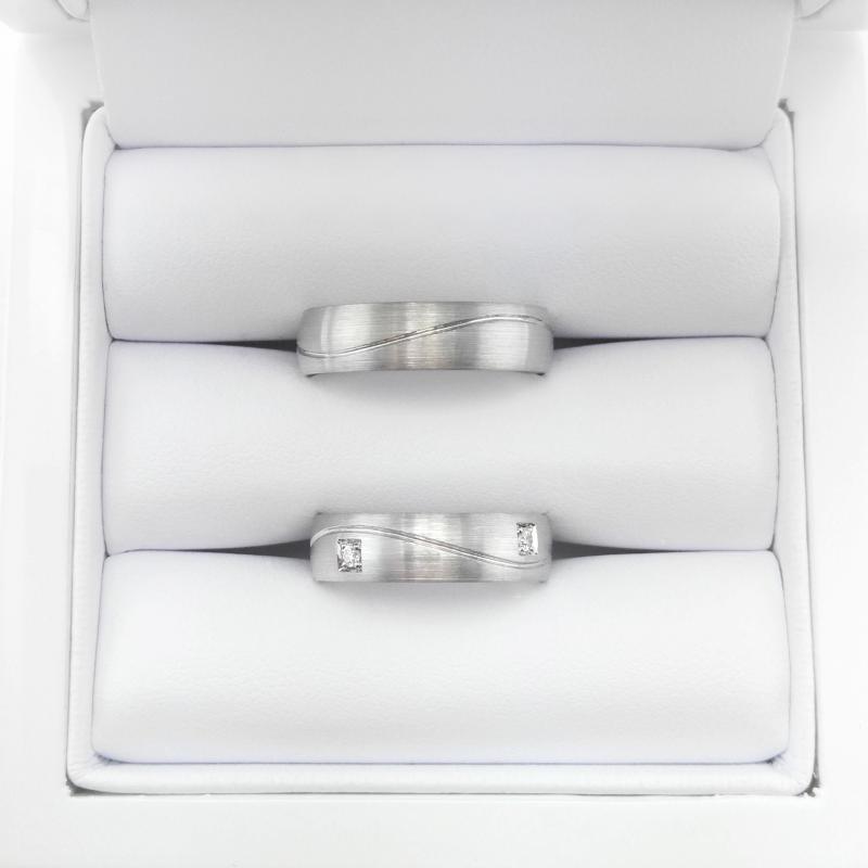 • raffinierte Platin-Eheringe mit einer wellenförmigen Linie auf matter Oberfläche