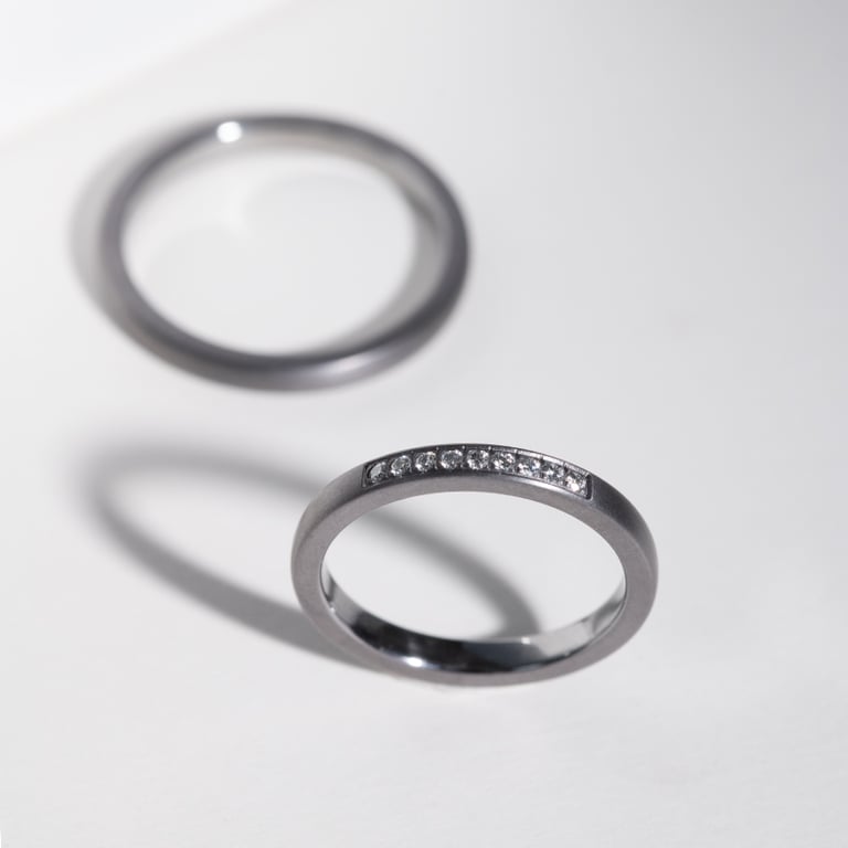 • die Tantaloberfläche verleiht den Ringen einen einzigartigen grauen Farbton und hypoallergene Eigenschaften