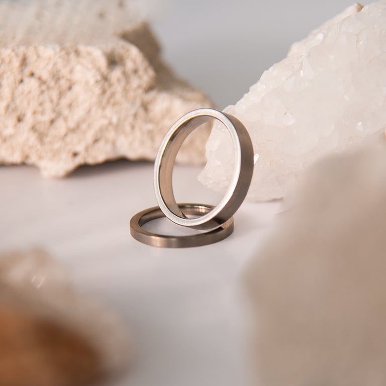 • einfache Eheringe aus Titan, die sehr beständig sind und fantastisch aussehen
