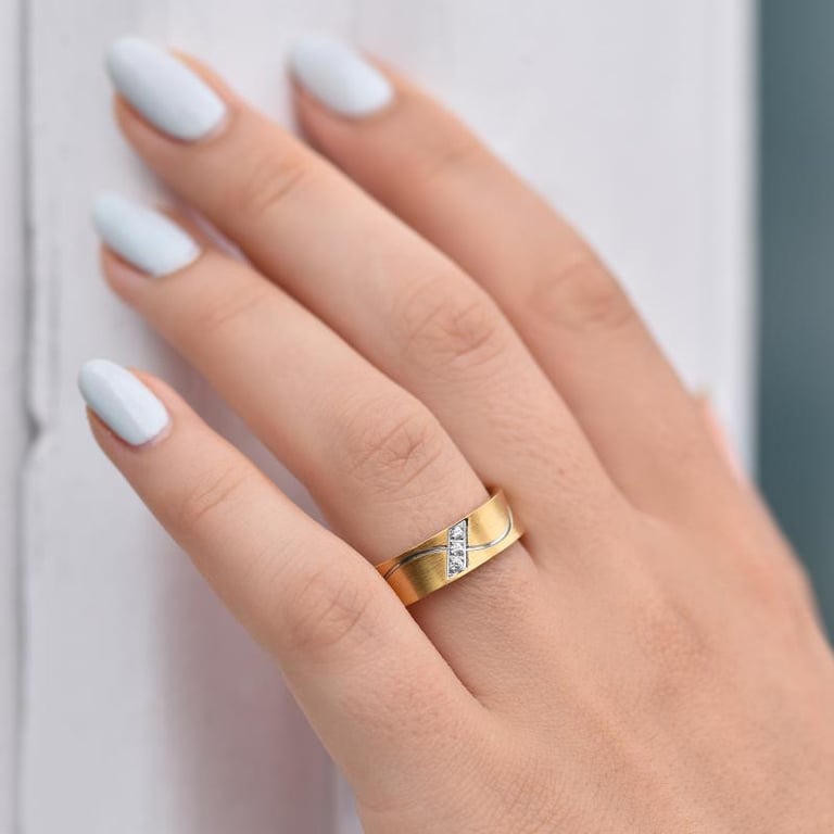 • Gelbgoldringe mit einem zarten weißgoldenen Wellenband