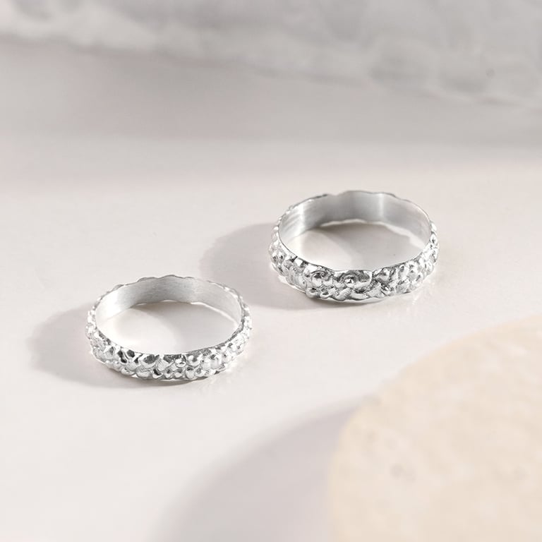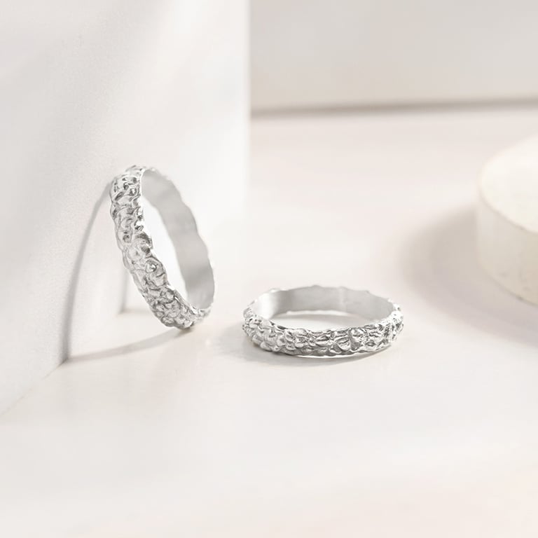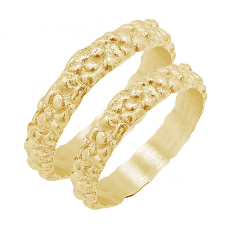 • goldene Eheringe mit einer außergewöhnlichen, aufgerauhten Oberfläche