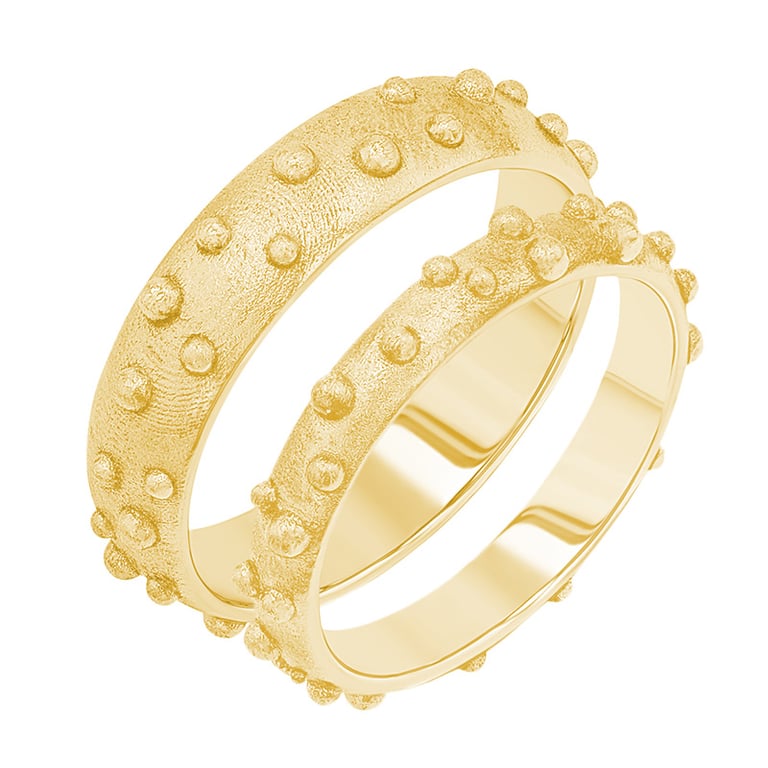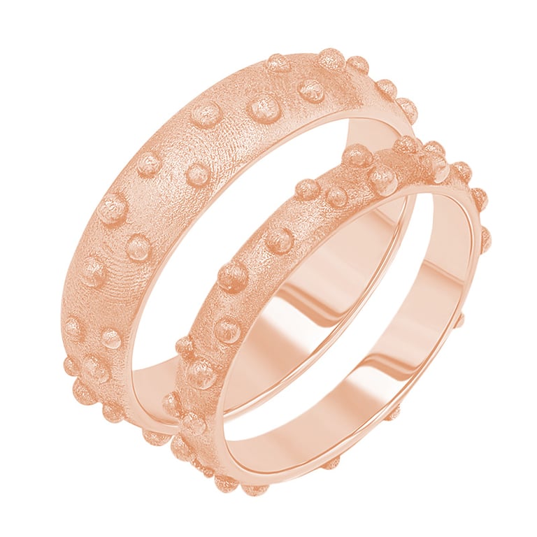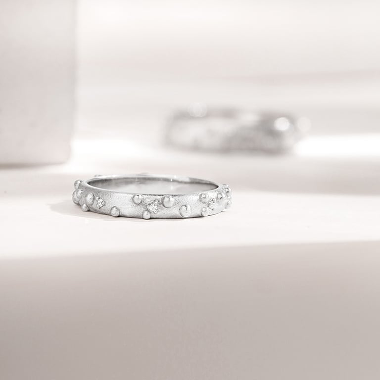 • die fein geformte Oberfläche mit winzigen Kügelchen verleiht dem Ring Originalität und außergewöhnlichen Charakter