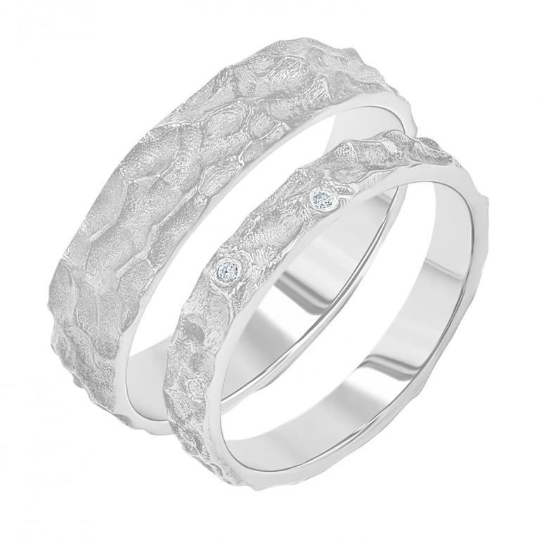 • von Hand verziert mit fünf winzigen natürlichen Diamanten, die den Ringen einen zarten und eleganten Glanz verleihen