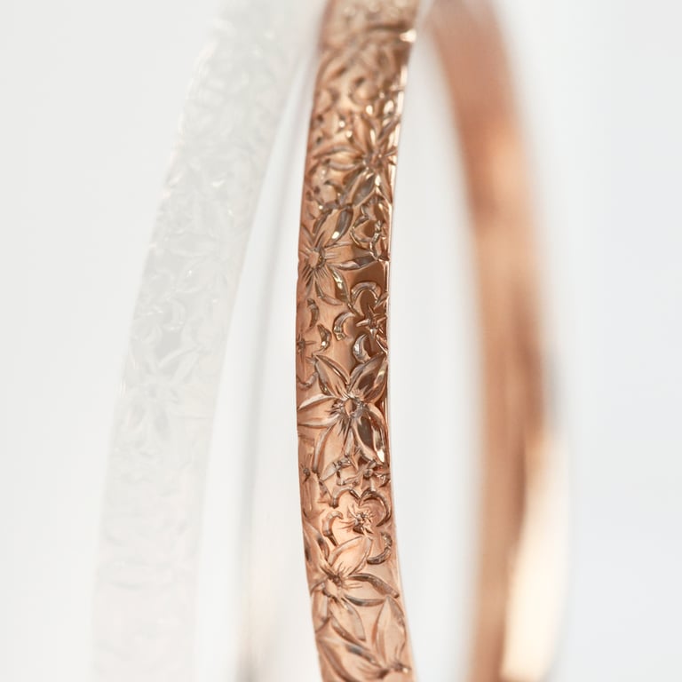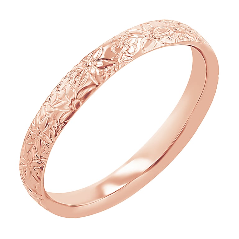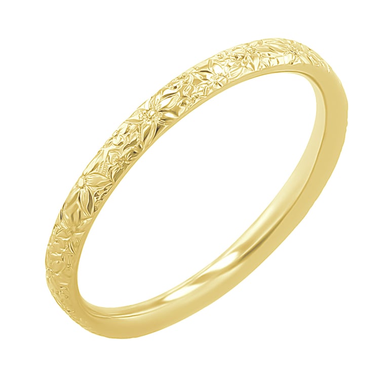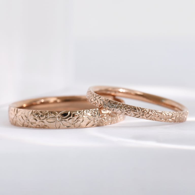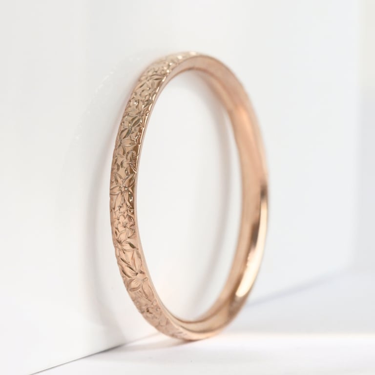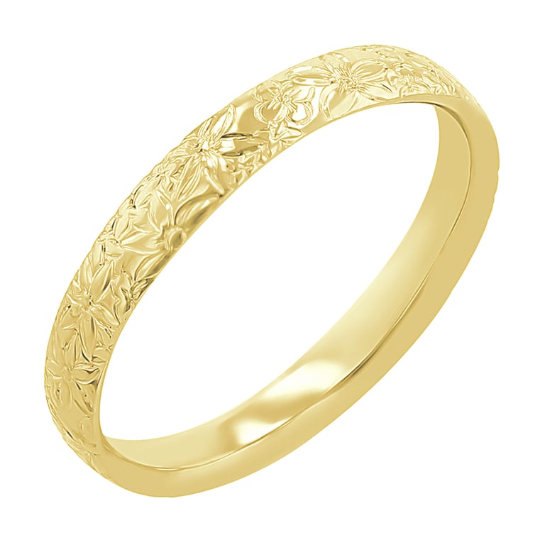 • dieses wunderschöne Paar Eheringe aus recyceltem Gold zeichnet sich durch eine aufwendige Gravur von Blumen aus, die die gesamte Oberfläche schmücken