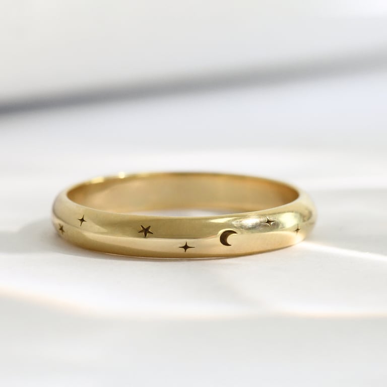 • beide Ringe sind mit einer bezaubernden Gravur des Mondes und kleiner Sterne verziert