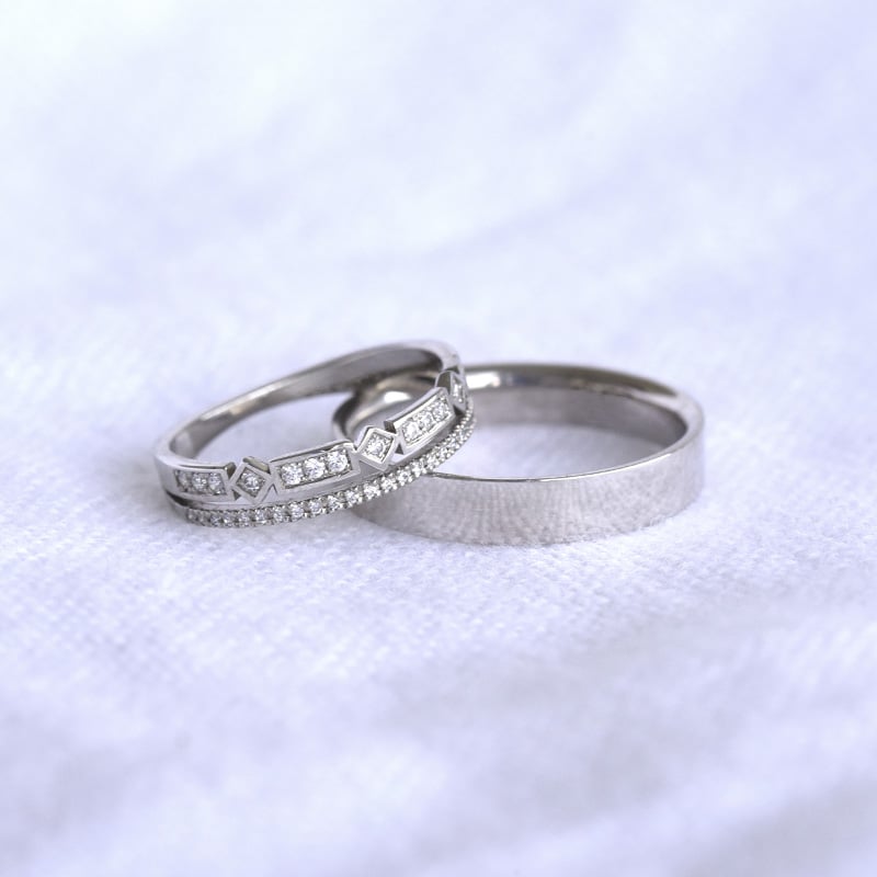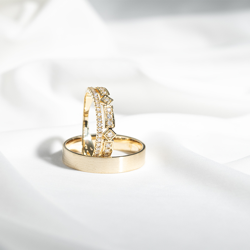 Eheringe mit Diamantring und flachem Ring Ward