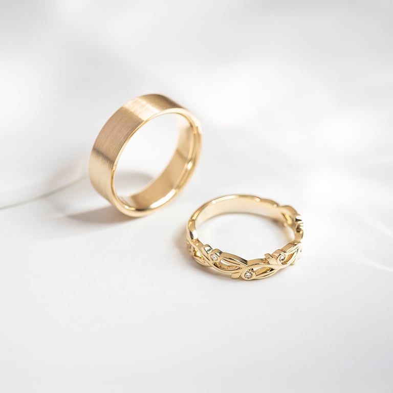 • dieses Ehering-Set kombiniert Romantik mit Minimalismus