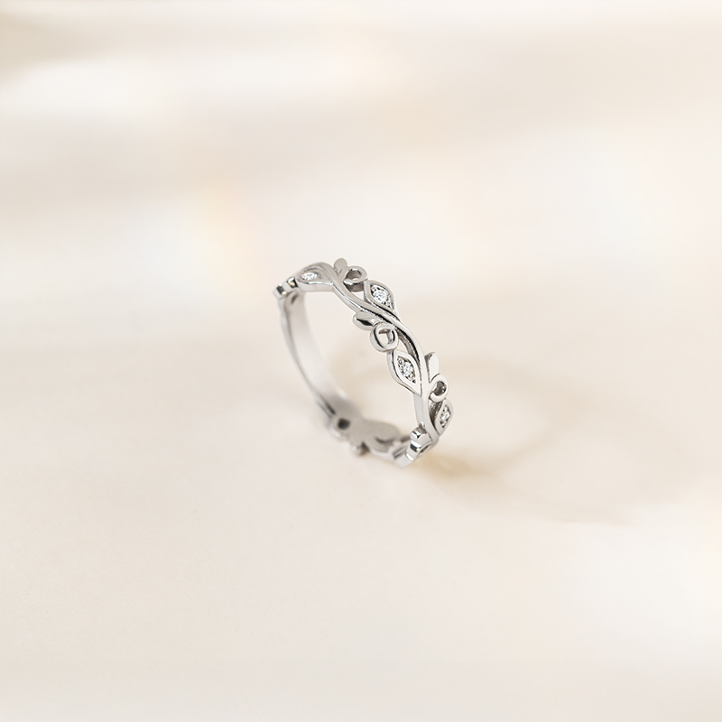 • der kleinere Eternity-Ring hat ein wunderschönes Blätterdesign und ihn schmücken funkelnde Diamanten