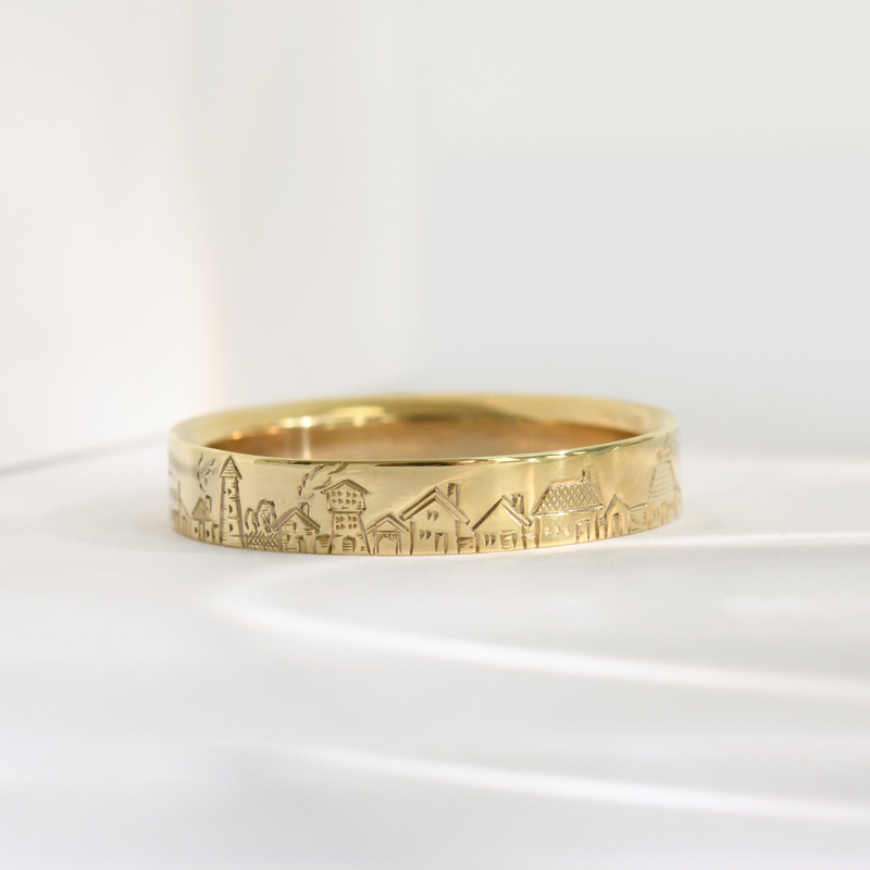 • beide Ringe werden von unserem Goldschmied per Hand graviert und sie zeigen eine Stadt