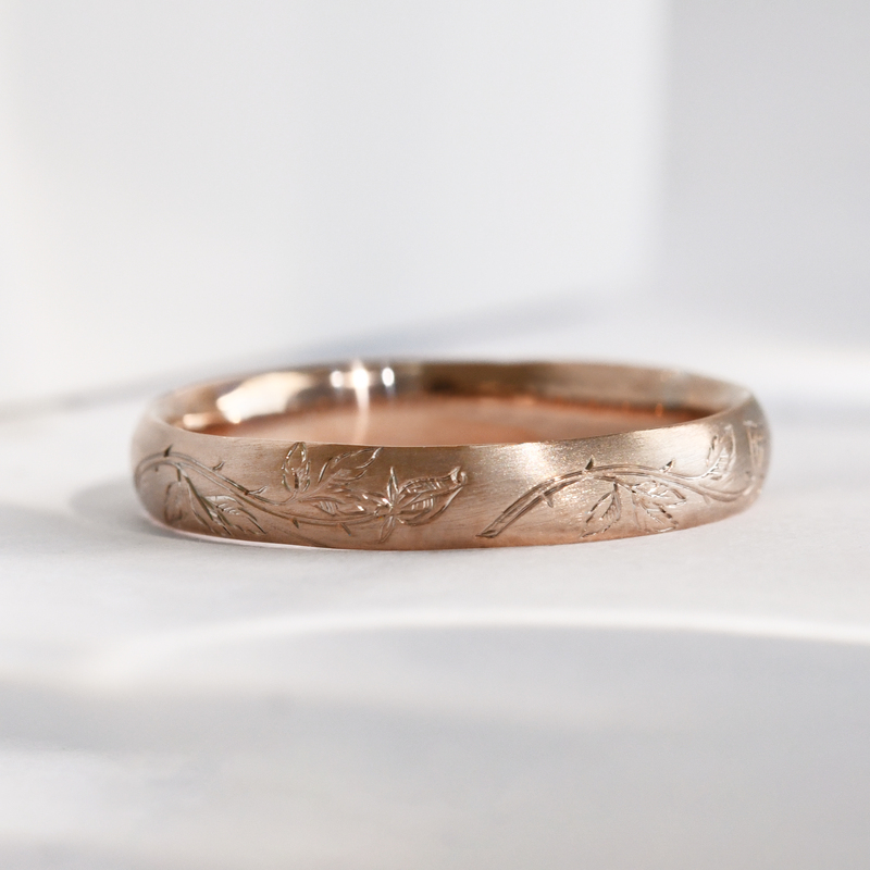 Eheringe mit von Hand gefertigter Rosengravur Danni