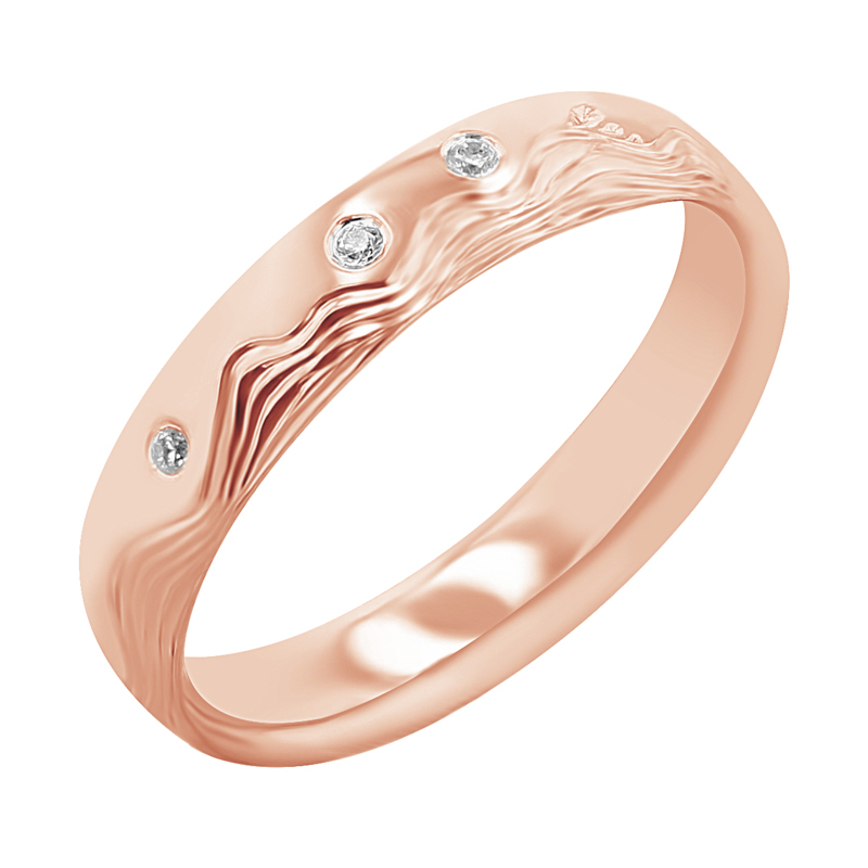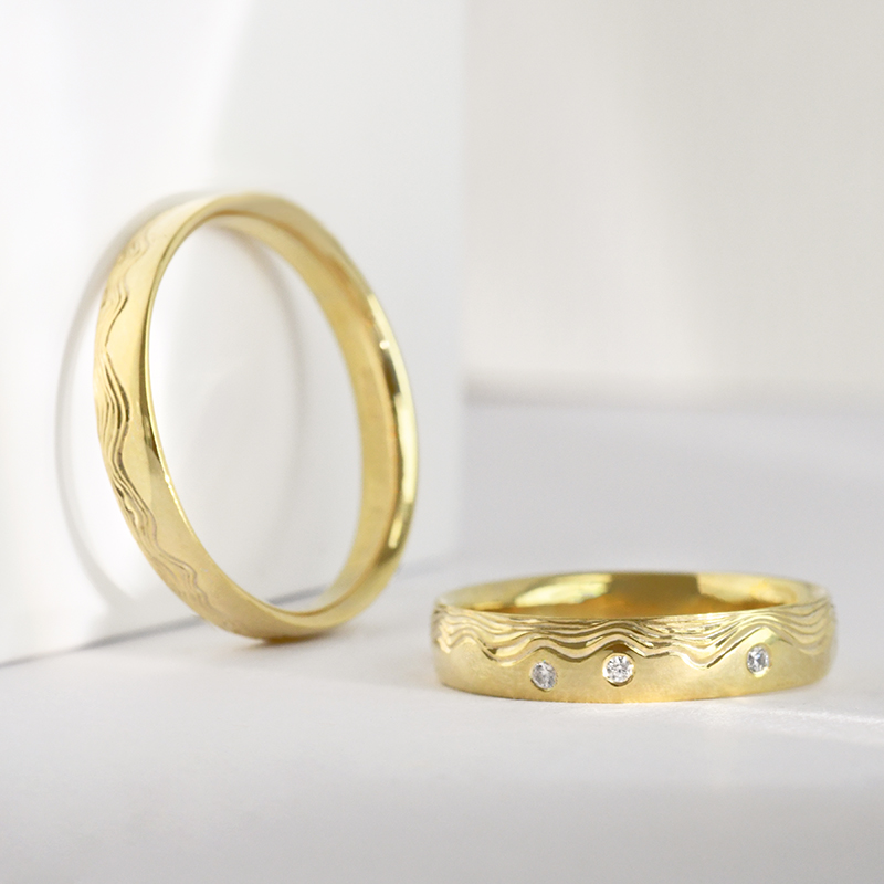 Eheringe mit von Hand gravierten Wellen und Diamanten Laurien
