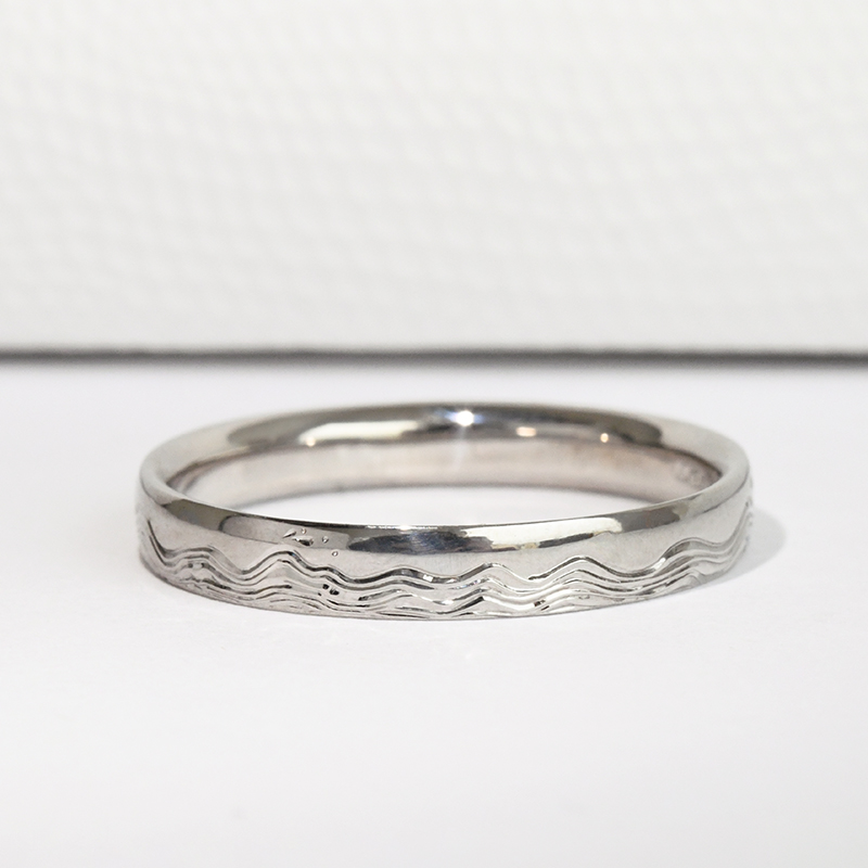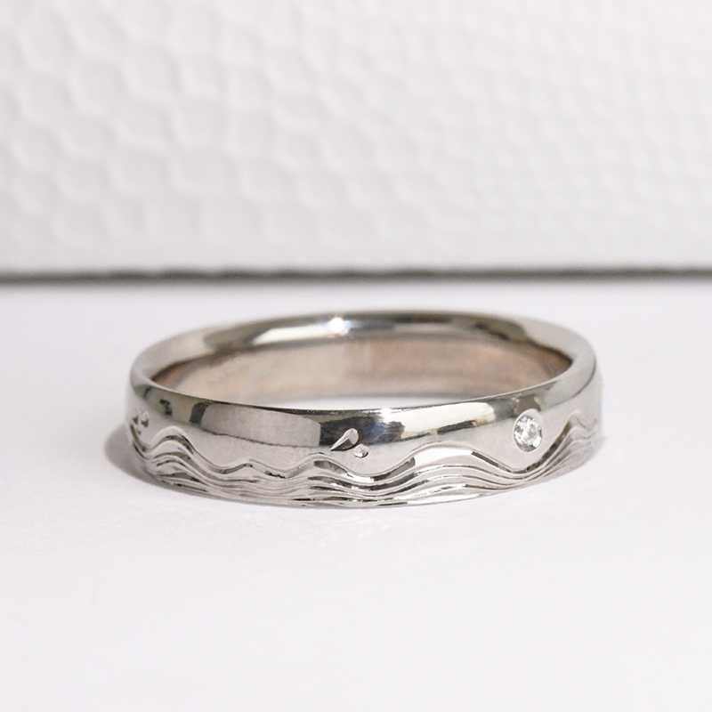 • die Wellengravur, die durch drei Diamanten glitzern, ist komplett von Hand gefertigt