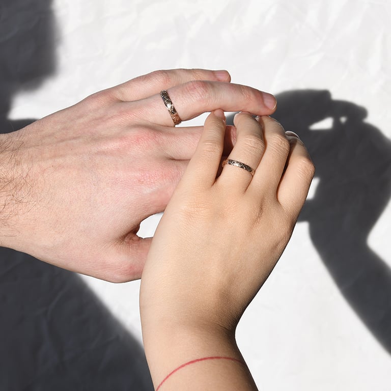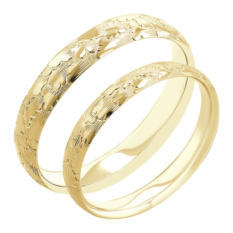 • Eheringe, deren Oberfläche mit perfekt ausgearbeiteten Wolken verziert ist