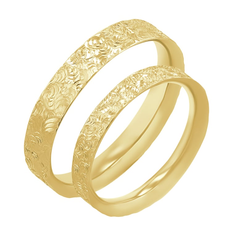 Eheringe mit von Hand gravierter Oberfläche Faye