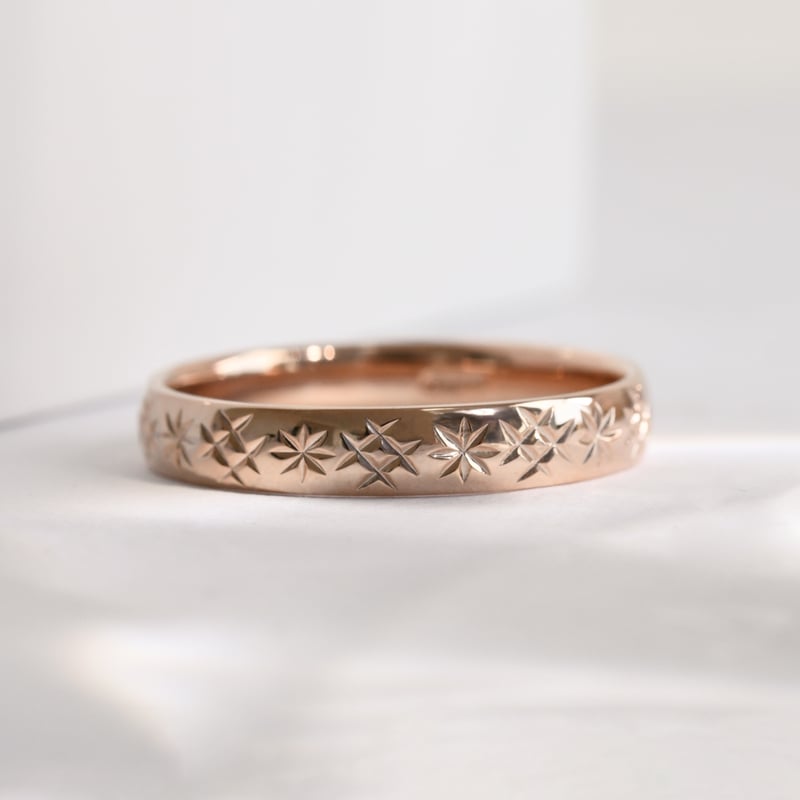 • die Sternengravur ziert die gesamte Oberfläche der Ringe und ähnelt einem kunstvollen Spitzenmuster
