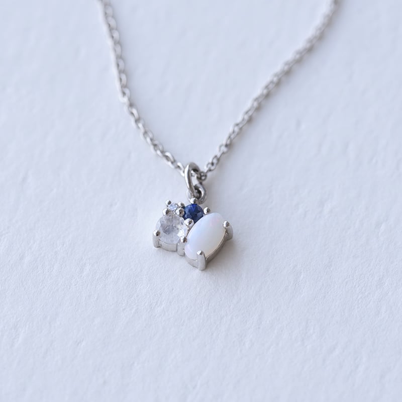 • die Kombination in Weißblautönen mit weißem Opal, Mondstein, Saphir und Diamant ist äußerst interessant und schön