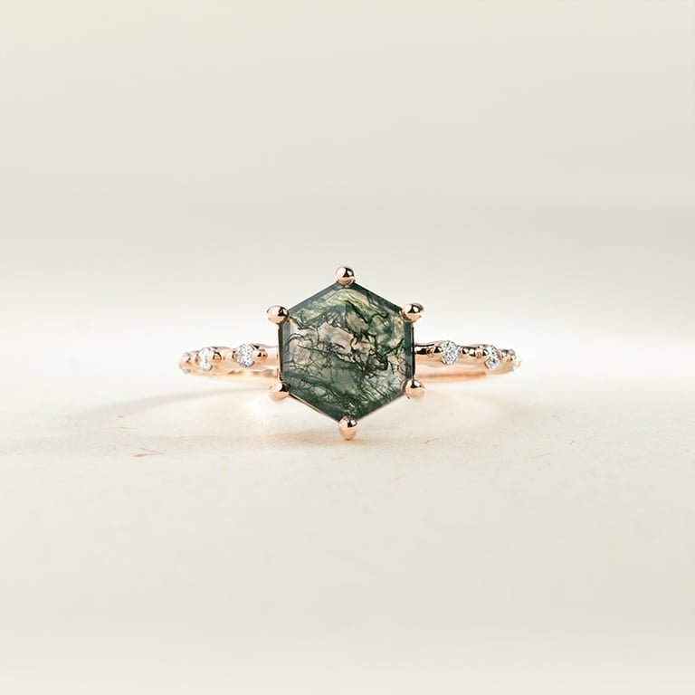 • es handelt sich um einen Moosachat, dessen dunkelgrüne Einschlüsse an eine Waldpflanze erinnern