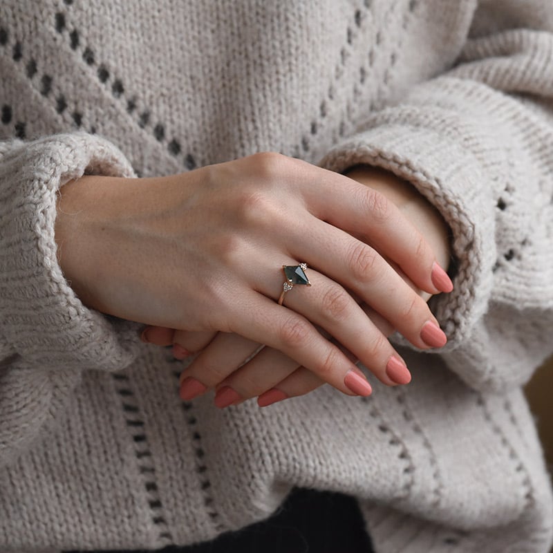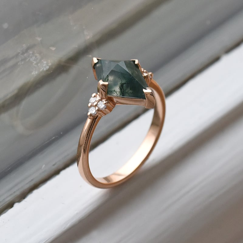 Einzigartiger Verlobungsring mit Moosachat Kettil