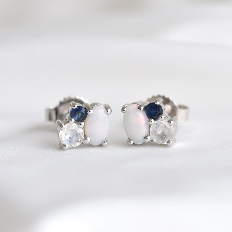• Ohrstecker mit Opal, Mondstein und Saphir