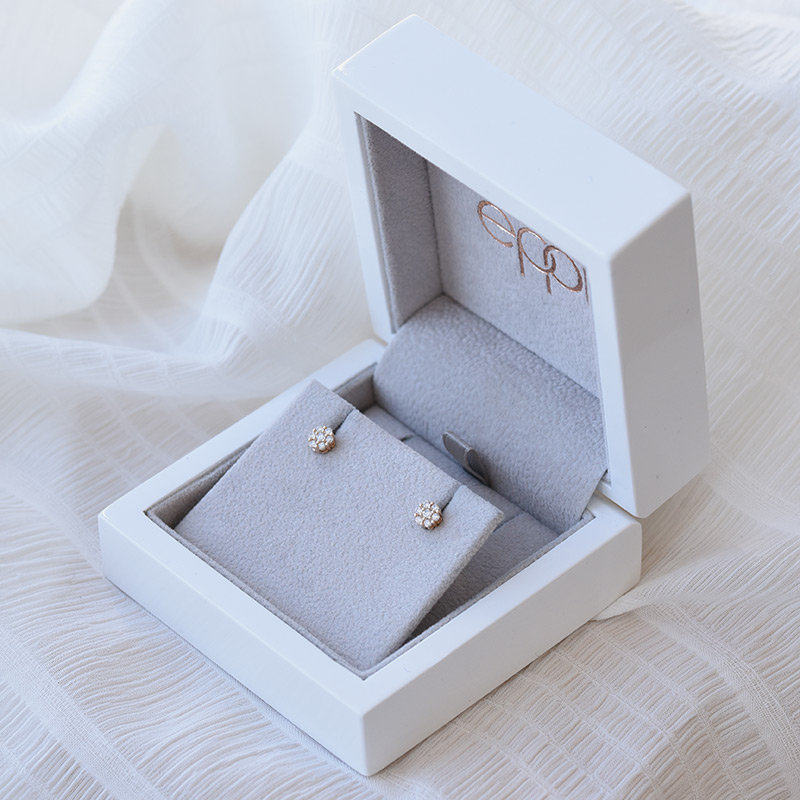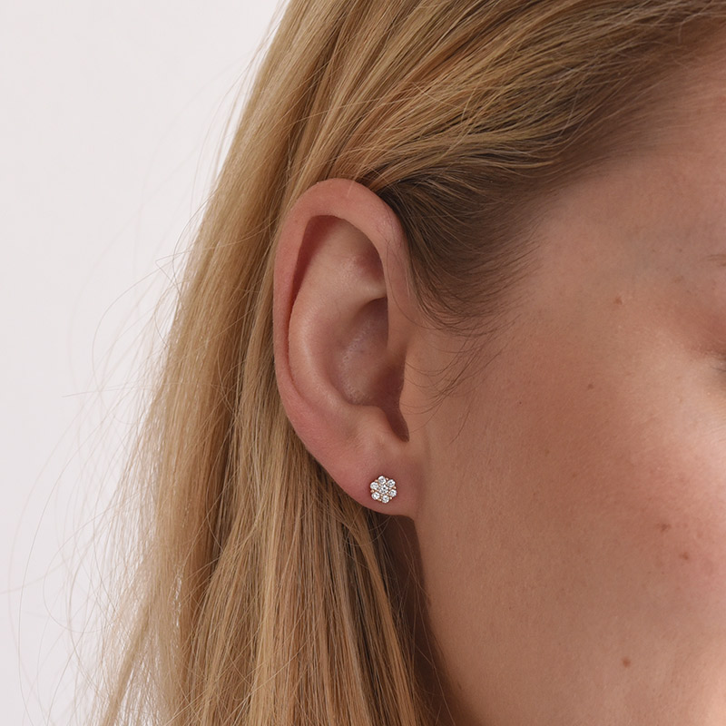 • die zarten Ohrstecker aus Weißgold wurden bis ins letzte Detail ausgearbeitet