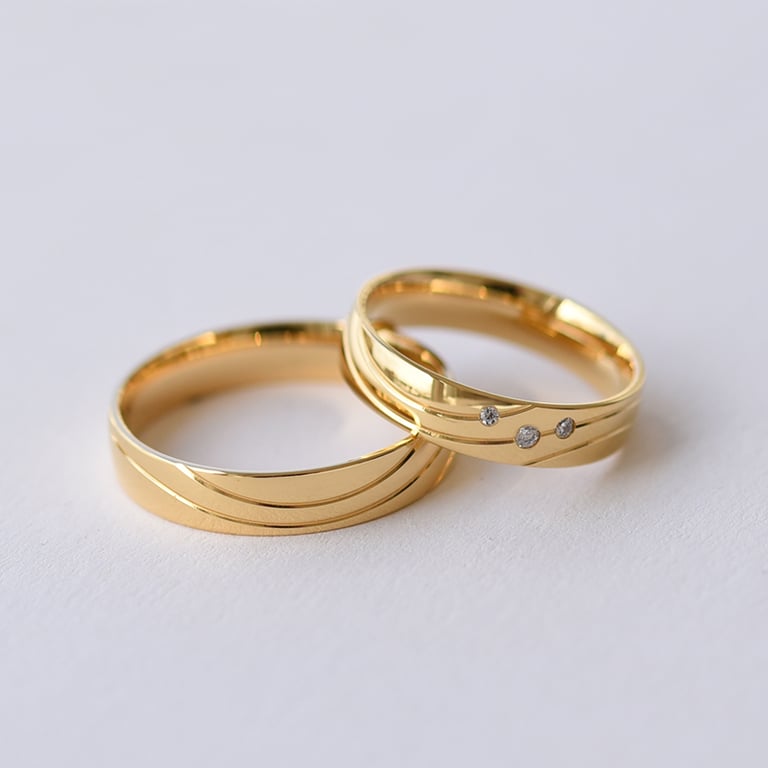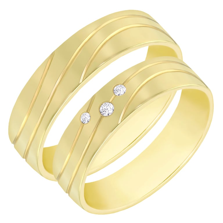 Elegante goldene Eheringe mit drei Diamanten Lerony