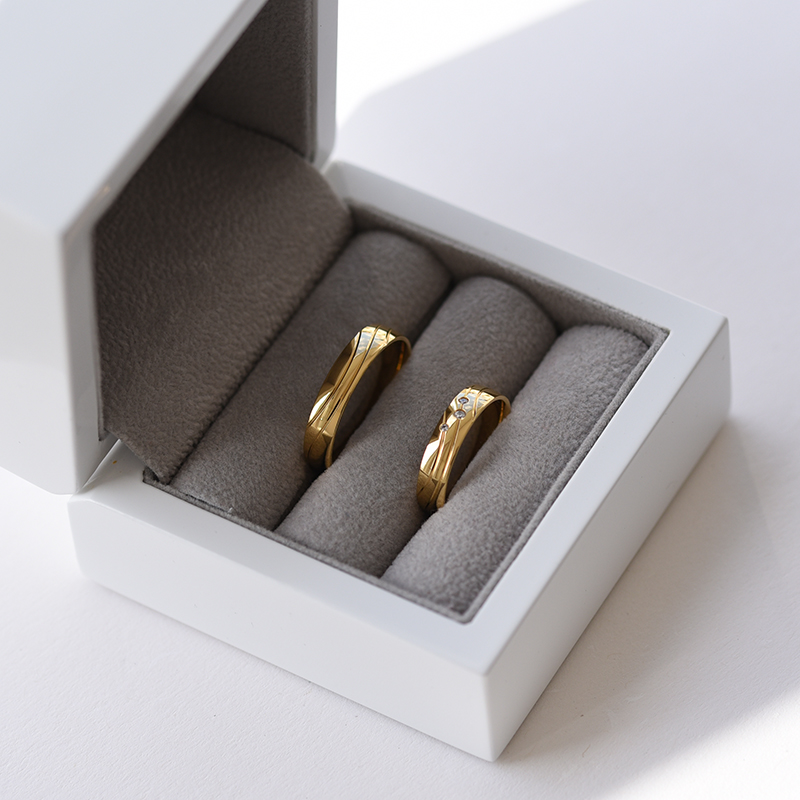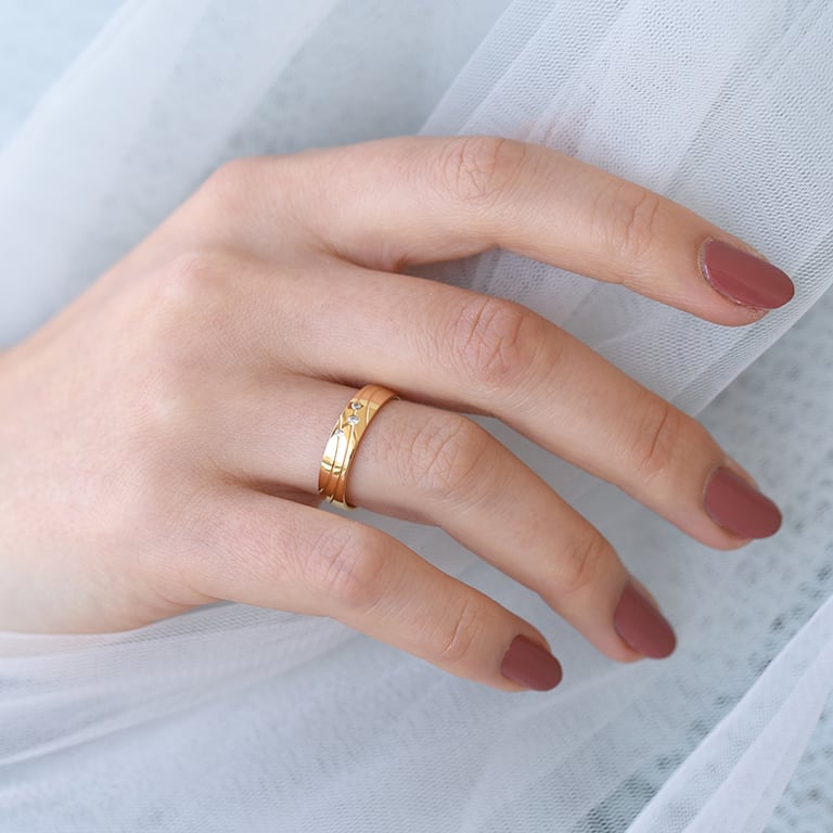 • die glatte Oberfläche der Ringe ist geschmückt durch eine elegante Rille