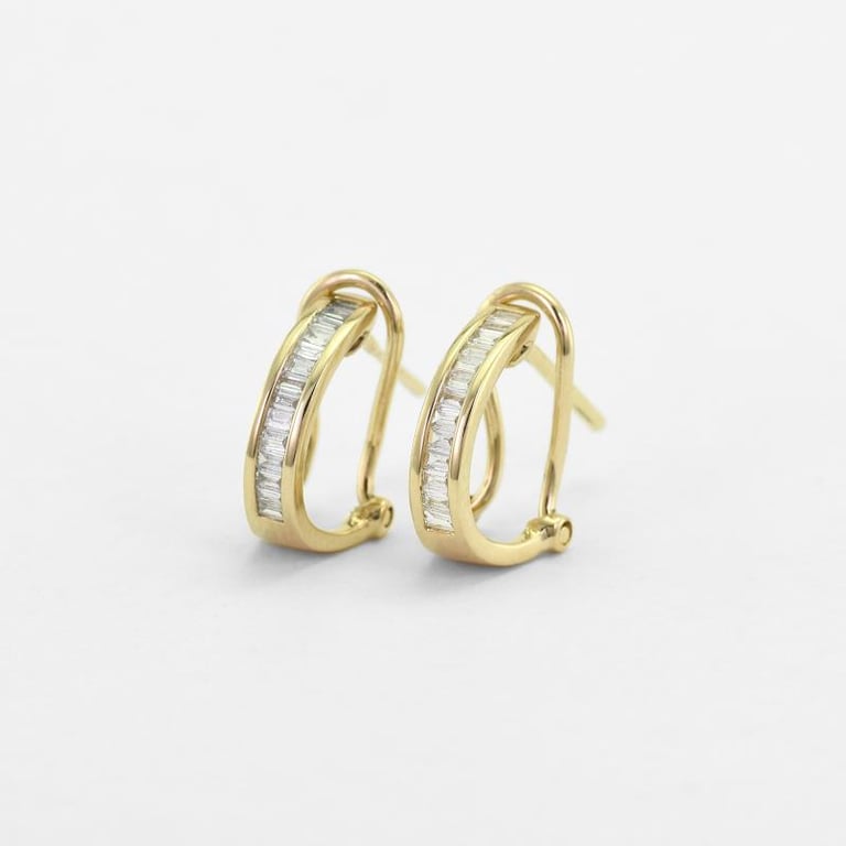 Elegante goldene Ohrclips mit Baguette-Diamanten Emy