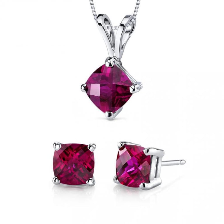 • ein Set in Gelb- oder Weißgold, das durch das Farbspiel der Rubine sofort fasziniert