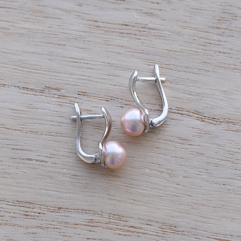 Elegante Ohrringe aus Silber mit Perle in Peach Scarlet