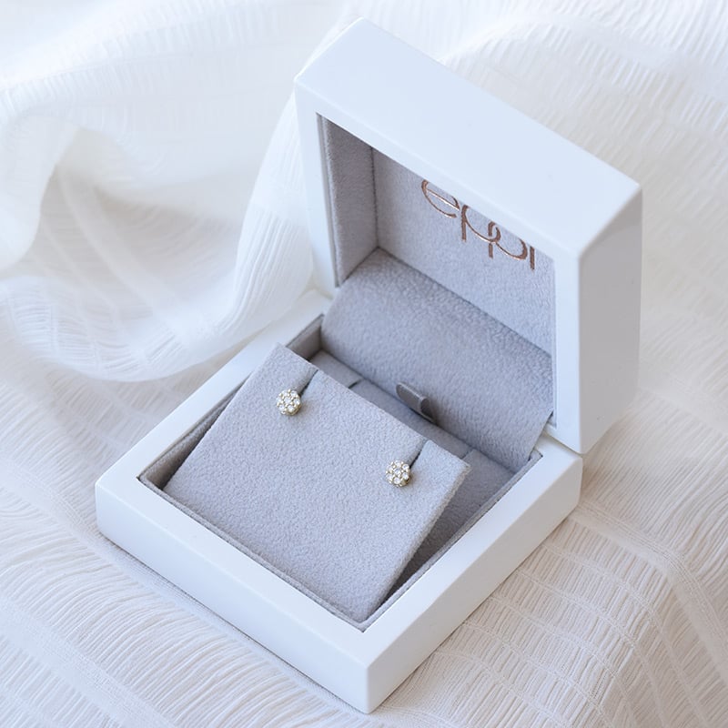 • jeder Ohrstecker erinnert an eine Blume oder Schneeflocke und funkelt mit 7 Lab Grown Diamanten