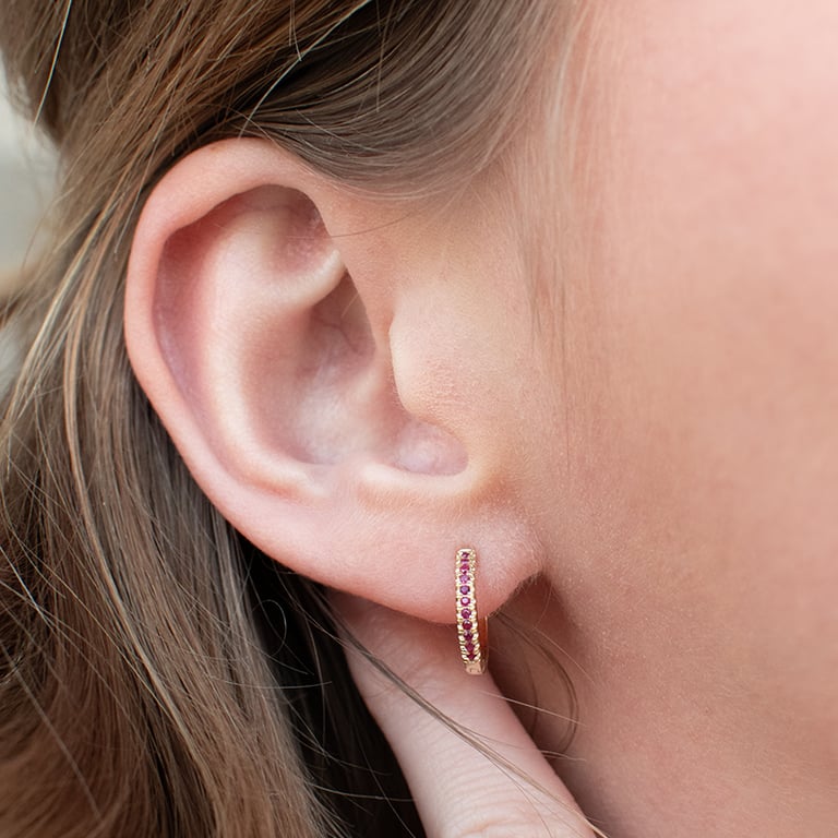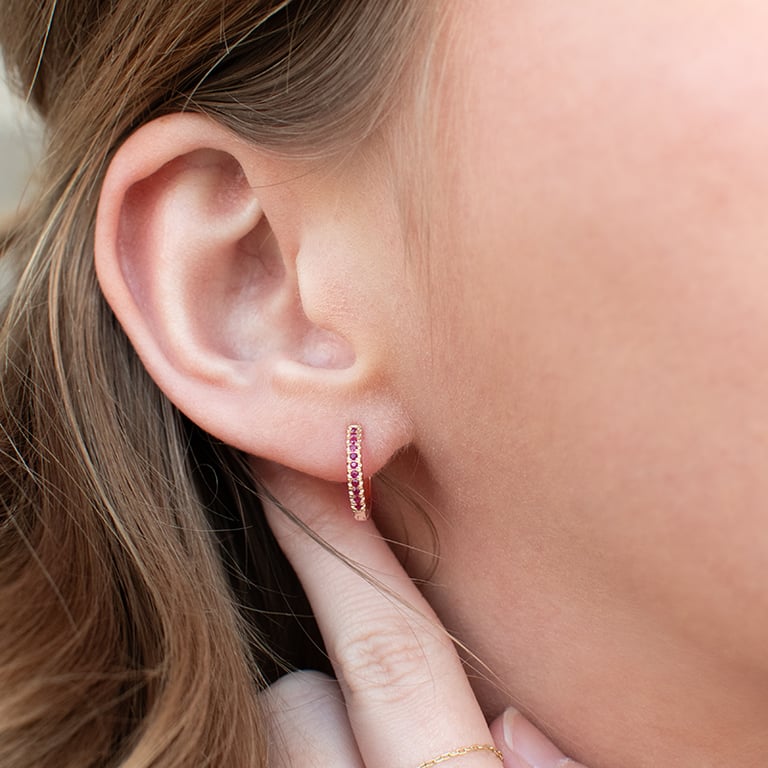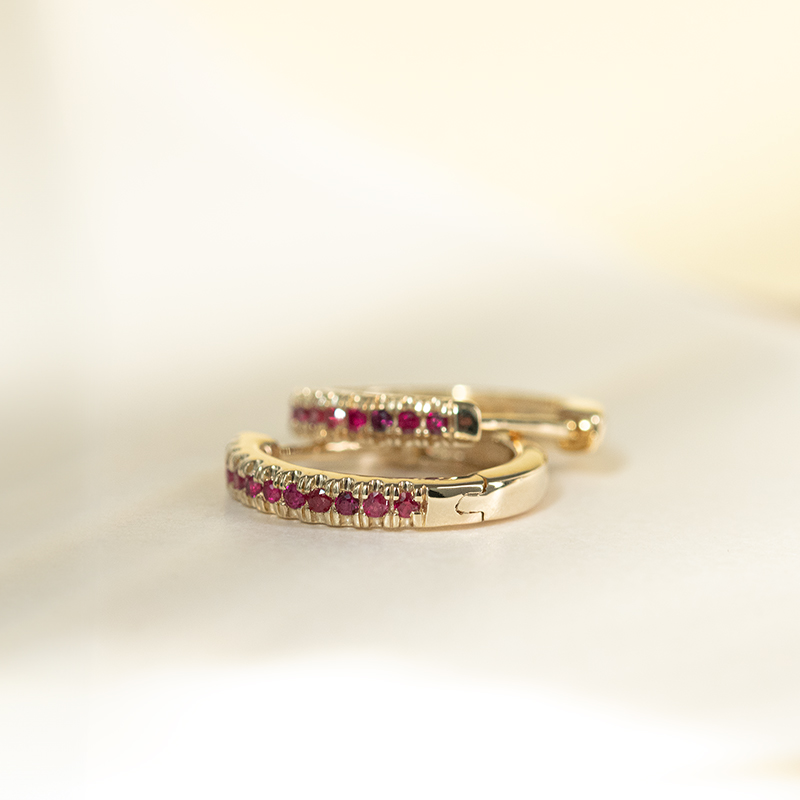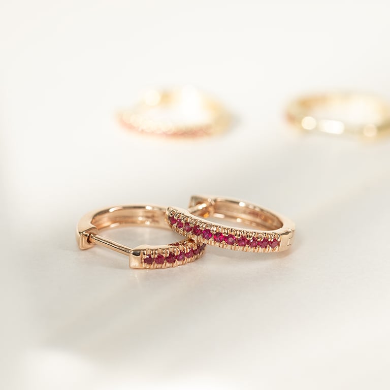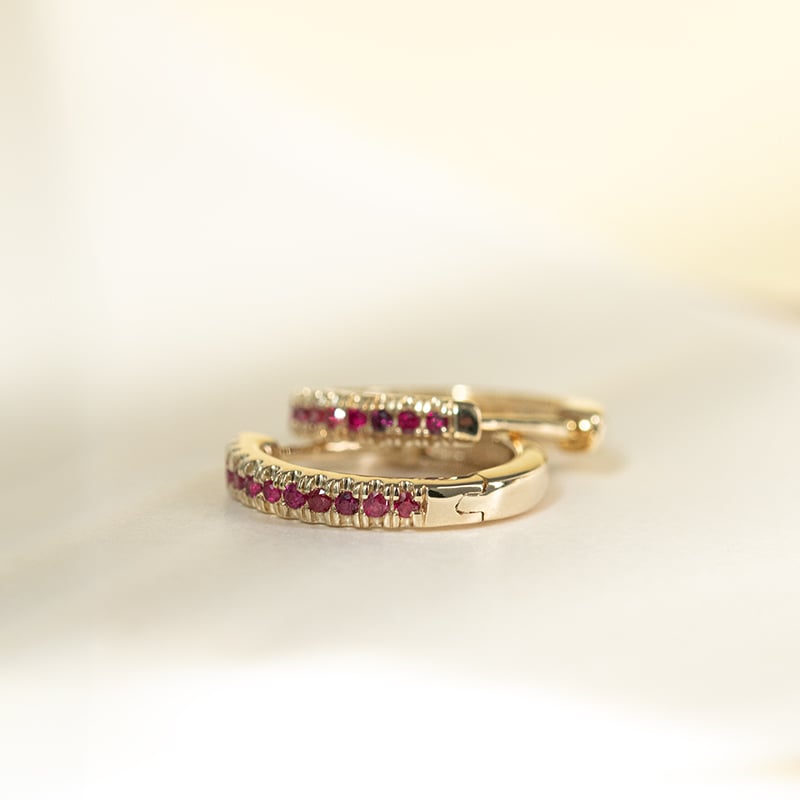 • jeder Ohrring ist mit 11 natürlichen Rubinen in einem kräftigen Rotton besetzt