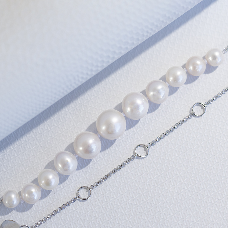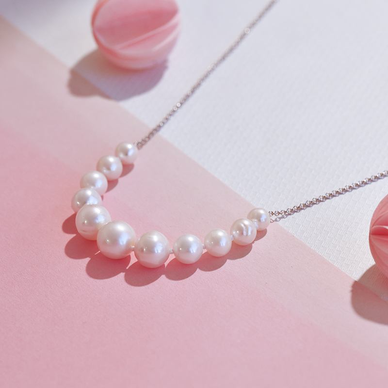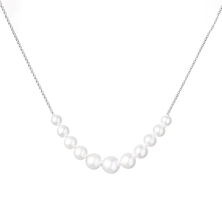 • 11 Süßwasserperlen auf einer zarten Kette aus rhodiniertem Silber
