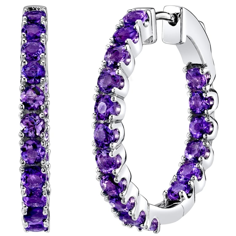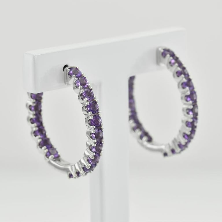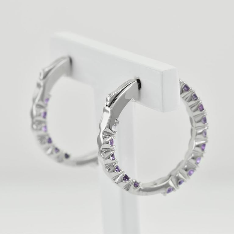 • diese Kreolen sind rundum mit purpuren Amethysten im Rundschliff besetzt
