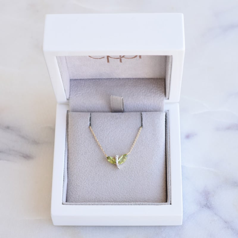 • ein besonderer Hingucker ist das schön verarbeitete Schmetterlingmotiv, das den Kontrast zwischen weißen Diamanten und grünen Amethysten betont