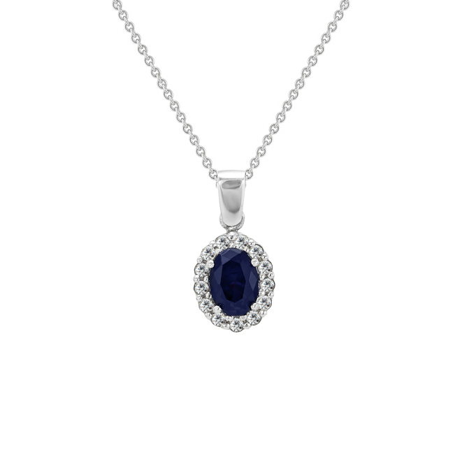 Eleganter Anhänger mit Saphir und Diamantenkranz Kate