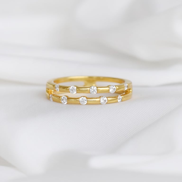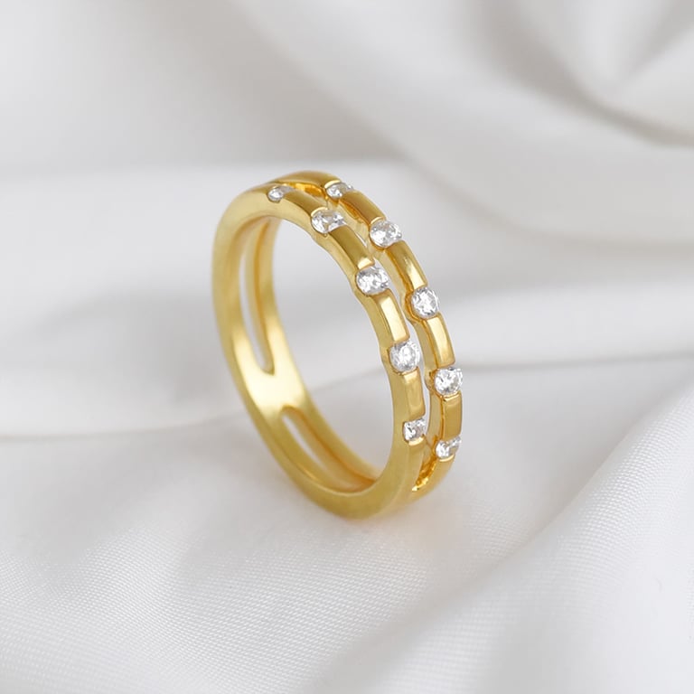 • doppelter Ring, der von den neuesten Trends in der Schmuckherstellung inspiriert wurde