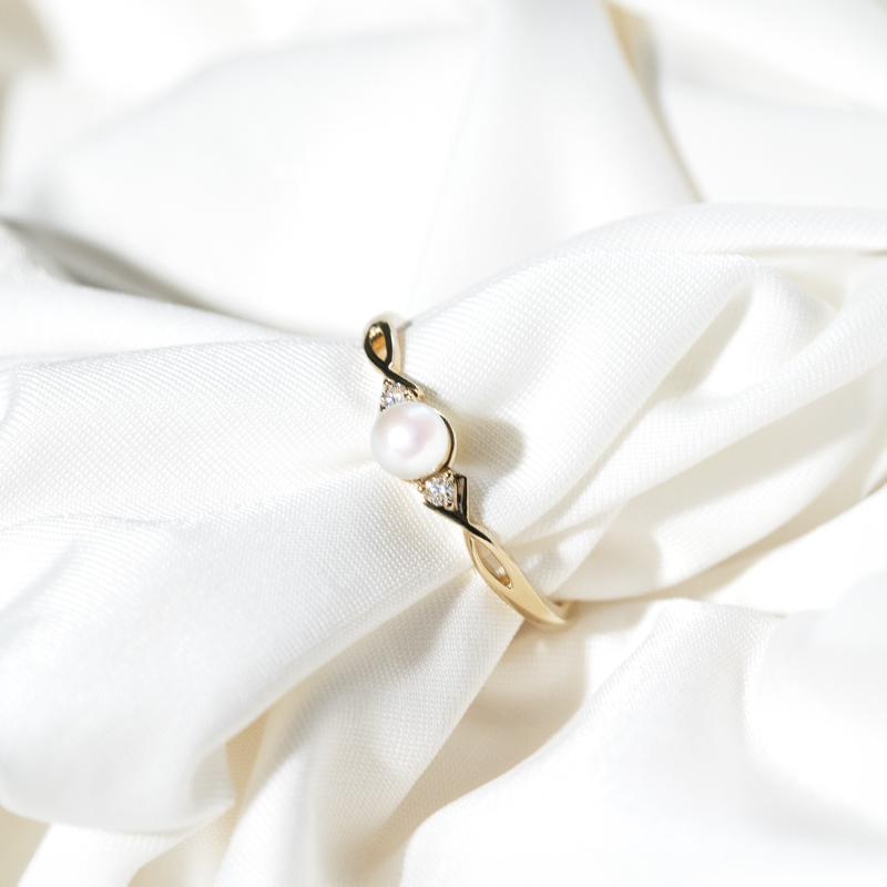 • sehr eleganter, zarter Goldring mit weißer Perle und Diamanten