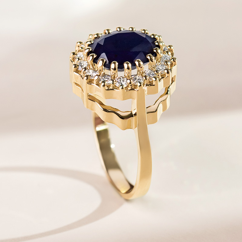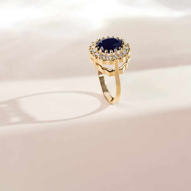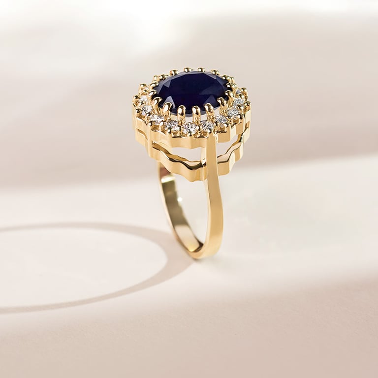 • der atemberaubende Saphir wird von Diamanten betont und bildet mit der Goldfassung eine virtuose Kombination