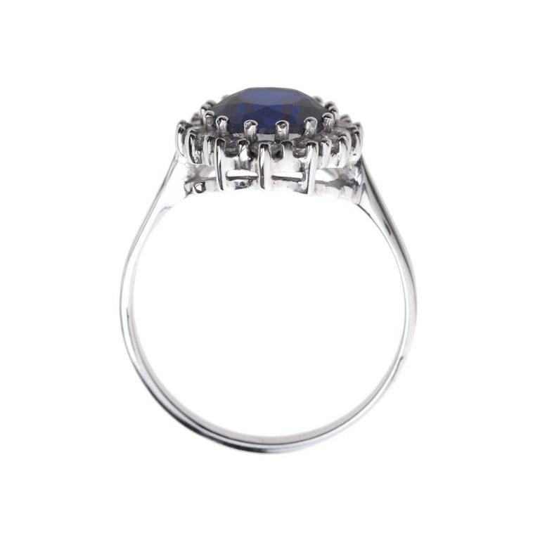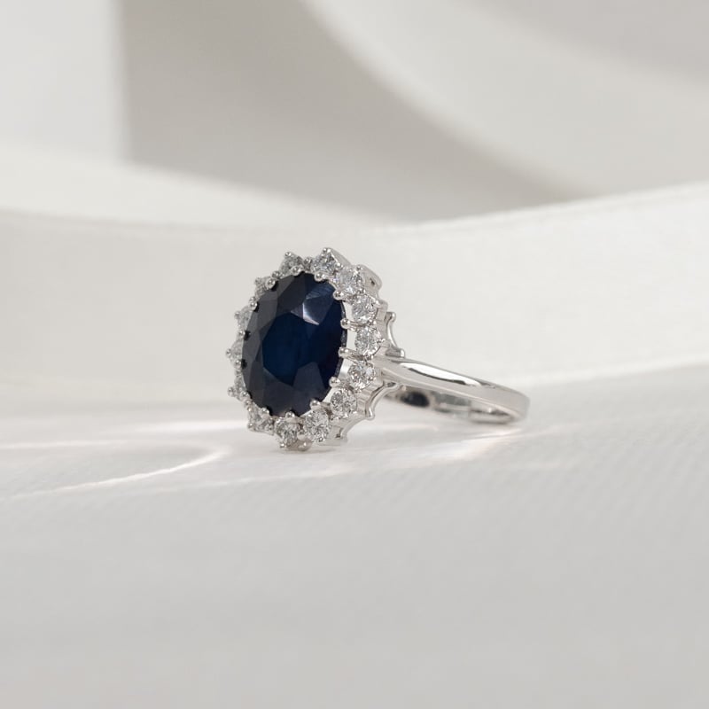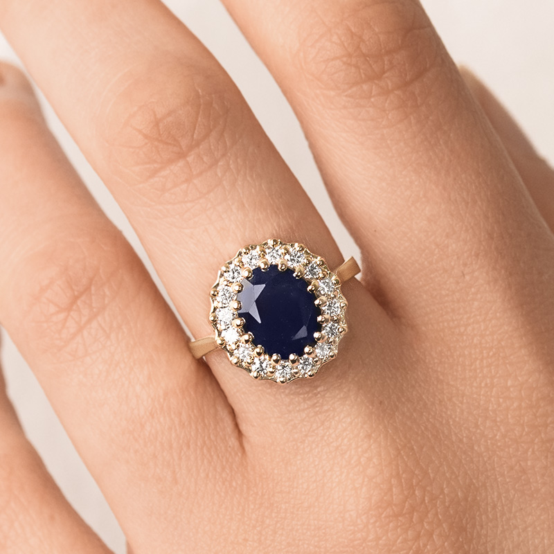 Eleganter Halo Verlobungsring mit Saphir und Diamanten Chrys